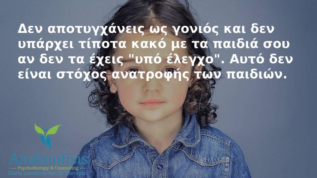 Έχοντας την πεποίθηση ότι θα πρέπει να έχουμε τα παιδιά μας κάτω από τον έλεγχο μας κλιμακώνουμε τις προσπάθειές μας να αποκτήσουμε «επιτυχώς» τον έλεγχο του παιδιού μας και της συμπεριφοράς του, μέσω απειλών, εκφοβισμού, εξαναγκασμού, φόβου και τιμωρίας. Επίσης μπορεί να αισθανόμαστε αβοήθητοι και απελπισμένοι και να αναρωτιόμαστε τι συμβαίνει που δεν καταφέρνουμε να έχουμε το παιδί μας υπό έλεγχο.